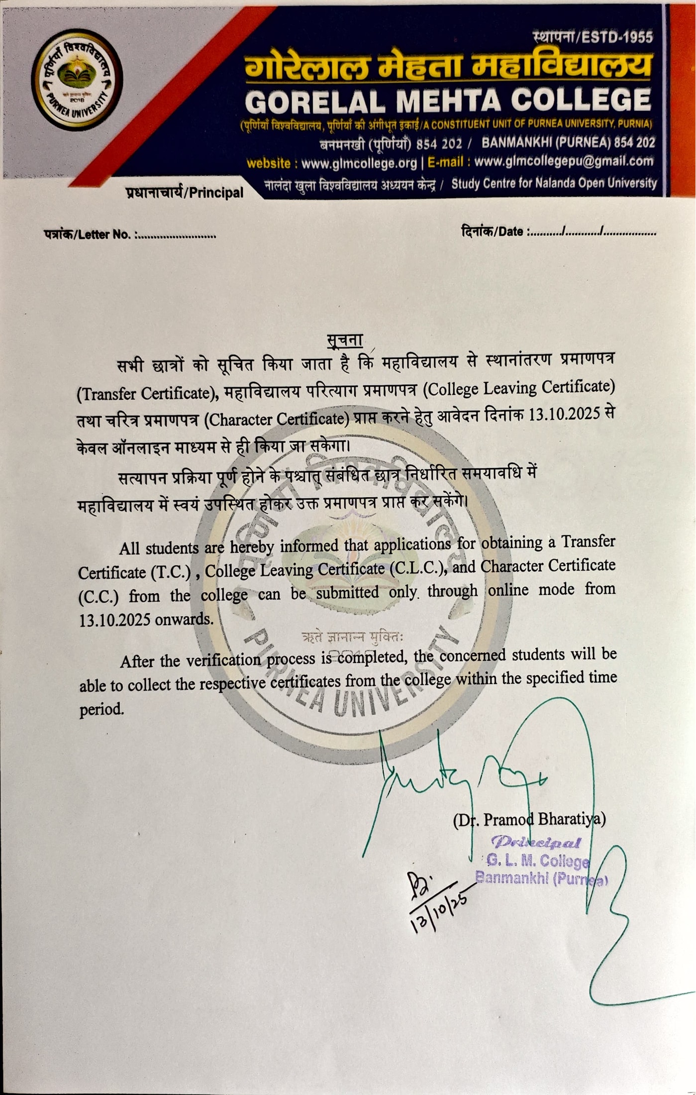 Dr. Pramod Bharatiya, प्रिय विद्यार्थियों, मैं आपको हार्दिक शुभकामनाएं देता हूं और हमारी प्रतिष्ठित संस्था में